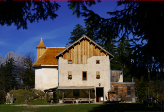 Sulla vetta del Monte Froppa (m. 1167 s.l.m.) si trova l’Eremo dei Romiti, testimonianza dell’unico convento esistito in Cadore e oggi adibito a rifugio alpino. Il rifugio Eremo dei romiti è raggiungibile a piedi da Domegge di Cadore, partendo dalla località Navarre sulle sponde del Lago Centro Cadore, attraverso il sentiero CAI n. 347 in un’ora di cammino, oppure con una fuori strada tramite una carrareccia di circa 1 km più lunga. La fondazione di questo locale risale al 1720, quando Giovanni Maria Pinazza di Domegge si stabilì sul Monte Froppa seguito da alcuni compaesani e altri frati appartenenti all’ordine dei terziari provenienti da località vicine, come Lorenzago, Auronzo e Pelos, ma anche un trevisano e un veneziano. Grazie alle offerte di privati cittadini provenienti da Pieve, Candide e San Pietro, furono costruiti un convento e un ricovero invernale nei pressi della Chiesa di San Giorgio di Domegge. Poco più tardi, in corrispondenza all’eremo, venne costruita una chiesa dedicata a San Giovanni Battista, all’interno della quale si narra fosse presente un crocifisso a grandezza naturale di Andrea Brustolon donato da Pietro Jacobbi da Perarolo. I frati, in totale 8 persone, vivevano all’insegna della povertà e dediti alla preghiera, coltivando patate e verdure e mendicando ciò che l’altitudine non permetteva loro di produrre. Erano inoltre famosi per la produzione di miele. Nonostante godessero della protezione dei loro benefattori, gli eremiti non erano sempre ben visti dalla popolazione cadorina; Giuseppe Ciani, vissuto alla fine del XVIII secolo, infatti, li descrisse come “un branco di fannulloni e fuggifatica”. I frati, chiamati dalla popolazione “Romiti”, erano disciplinati da una vera e propria costituzione che sanciva loro regole per quanto riguardava il digiuno, il dormire, il comportamento e addirittura i libri da leggere. Severe erano, inoltre, le norme che regolavano i loro rapporti con le donne che non potevano entrare nei confini del convento e con le quali gli eremiti potevano avere conversazioni solo in caso di estrema necessità. Giovanni Maria Pinazza morì nel 1755 (la storia racconta che i suoi resti furono sepolti sotto il pavimento della chiesa), e l’eremo fu chiuso e abbandonato nel 1810 per ordine di Napoleone. Nel 2009, alcuni contributi comunali ed europei, hanno reso possibile uno spettacolare restauro dell’intero edificio ad unica eccezione della chiesa, completata solo recentemente grazie al finanziamento del Comune di Domegge di Cadore e del G.A.L.! D’allora il locale è gestito da una famiglia di Domegge che contribuisce anche alla pulizia dell’ambiente circostante e alla gestione dei sentieri vicini. Il rifugio è aperto tutti i giorni da maggio ad ottobre e durante le vacanze natalizie e da fine febbraio solo i fine settimana, ed offre, oltre al servizio bar e ristorante, anche la possibilità di pernottare mettendo a disposizione 25 posti letto, suddivisi in 4 stanzette, ciascuna con bagno e doccia autonomi, e un camerone con due bagni destinato alle comitive. La cucina offre la gastronomia tipica del Cadore ad un ottimo rapporto tra qualità e prezzo, e all’interno dell’edificio vi è una collezione di sculture e dipinti creati dai gestori. La fantastica posizione del rifugio permette inoltre ai visitatori di godere di una spettacolare vista, poiché il Monte Froppa funge da “terrazzo” affacciandosi su buona parte del Cadore e sulle montagne ad esso sovrastanti
