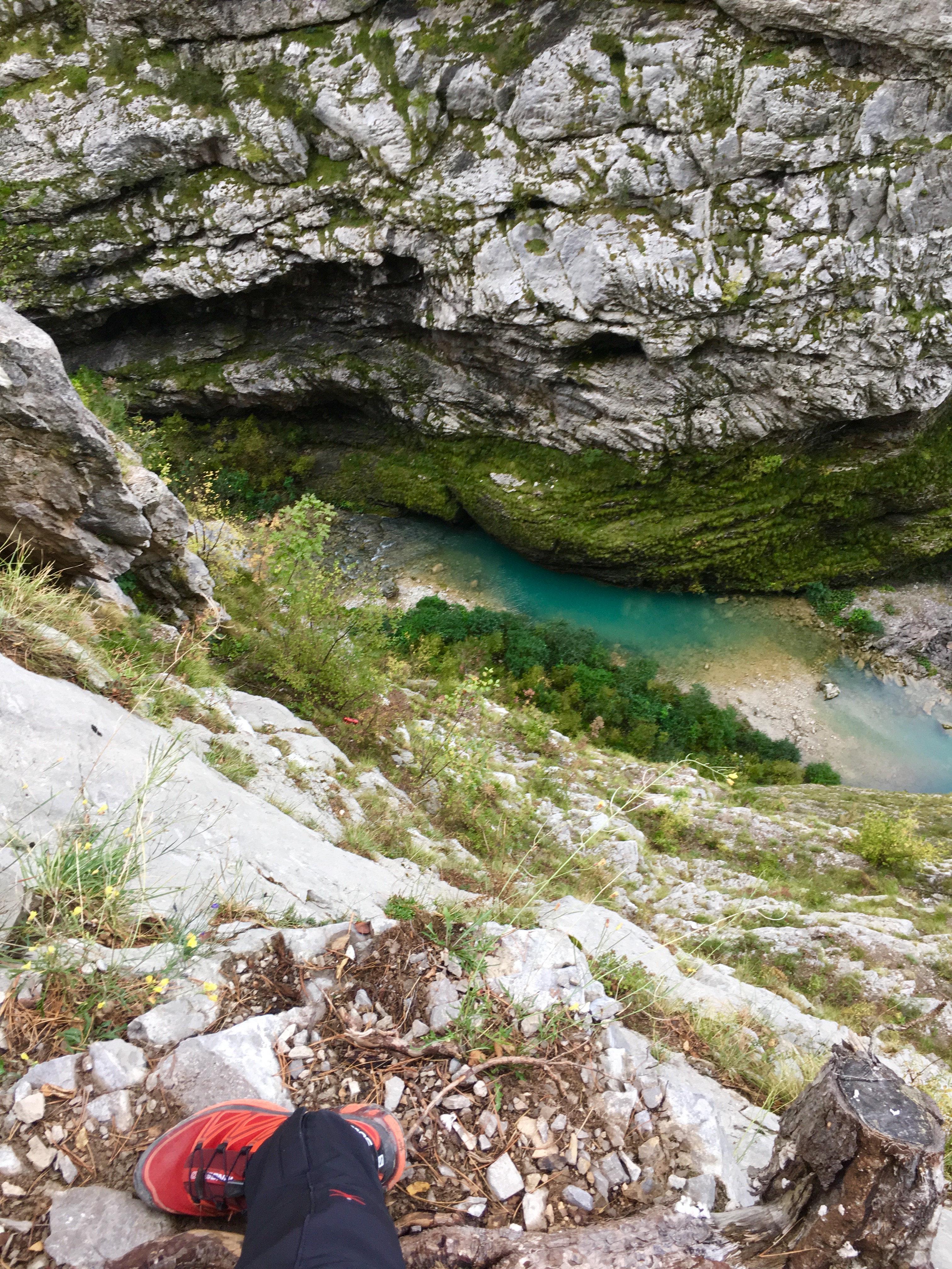 Ma l’idea di creare una via ferrata che sale la gola del vajont, dove tutta quell’acqua ha preso velocità prima di abbattersi su Longarone, devo ammettere che la trovo assolutamente originale ed efficace al tempo stesso. Si parte poco sopra l’abitato di Codissago, qualche minuto di cammino nel bosco e ci si addentra in una serie di gallerie, quelle che portavano gli operai al cantiere della diga durante la sua costruzione. Una facile cengia conduce alla partenza vera e propria della via; i parapetti di acciaio arrugginito piegati verso valle lasciano lo spazio per una prima riflessione sulla violenza distruttiva dell’acqua che quella maledetta notte li ha ridotti in quello stato. Proseguendo, il percorso si dimostra subito molto esposto e verticale. Il vuoto sotto i piedi ci accompagnerà per quasi tutta la sua lunghezza, mentre la verticalità sarà a tratti sostituita da dei bellissimi traversi, alcuni privi di appoggi naturali. Cavi e ancoraggi nuovi di zecca, chiodi e staffe posizionati nei punti giusti danno sicurezza nella salita, che richiede comunque un po’ di coordinazione tra braccia e gambe per non affaticarsi troppo. La capacità tecnica richiesta non è elevata, ma non è certo il caso di testare su queste pareti se si soffre di vertigini. La vista della diga si fa desiderare, va sudata nel vero senso della parola; solo negli ultimi metri di dislivello la sua possente figura si mostra sullo sfondo. Dal terrazzino finale si gode di un punto di vista unico sulla frana ad “M “del monte Toc, sulla stretta gola del Vajont e su quell’imponente ed oramai inutile colata di cemento armato.