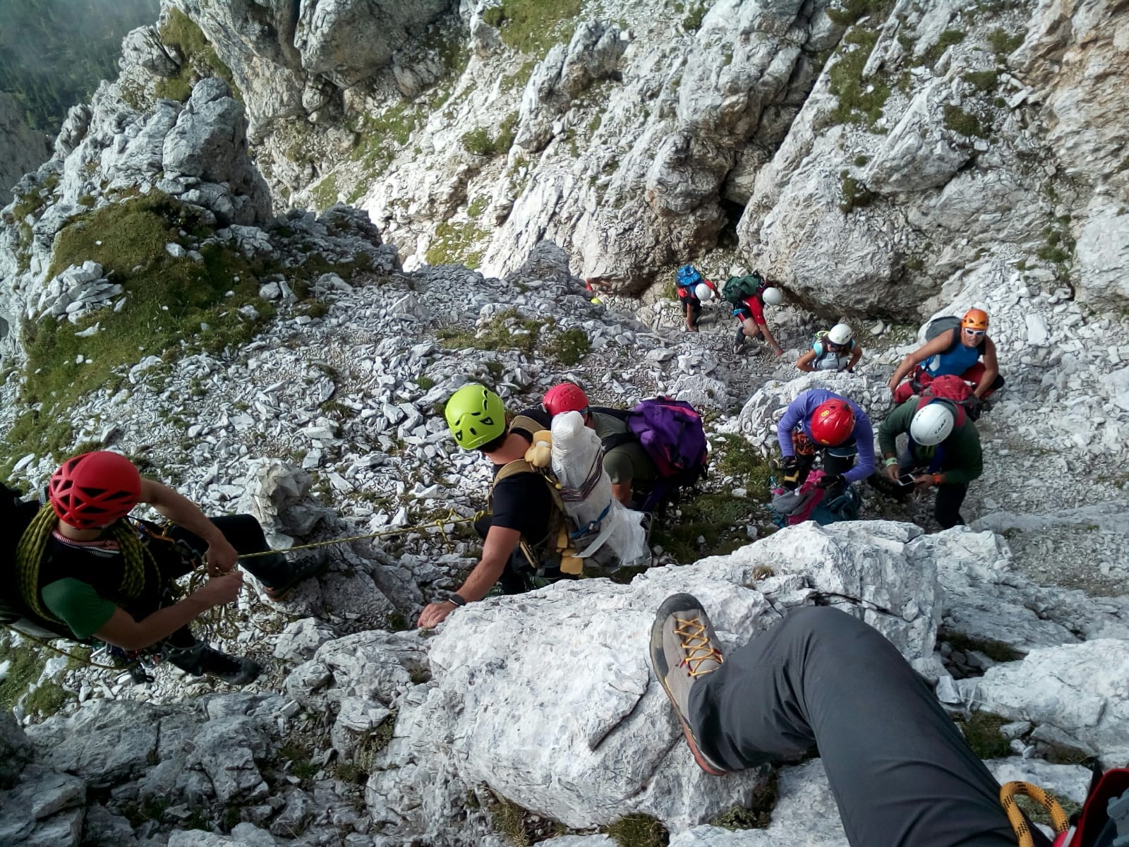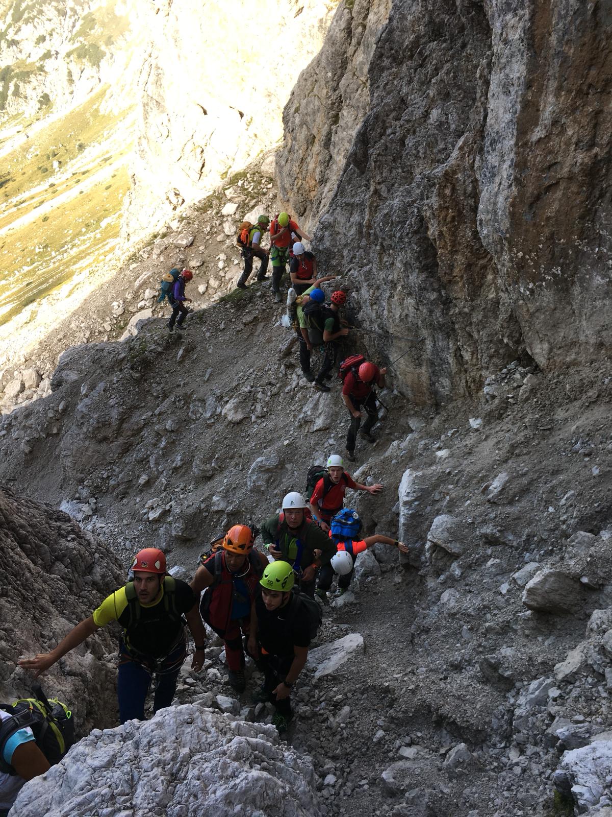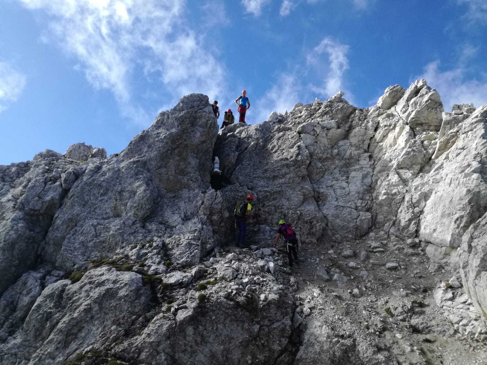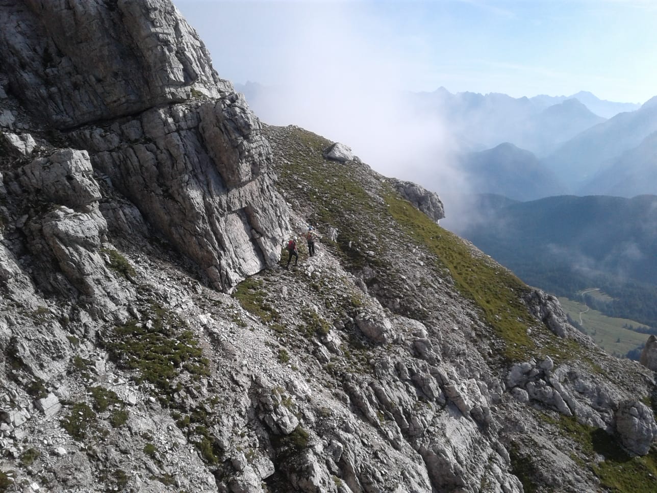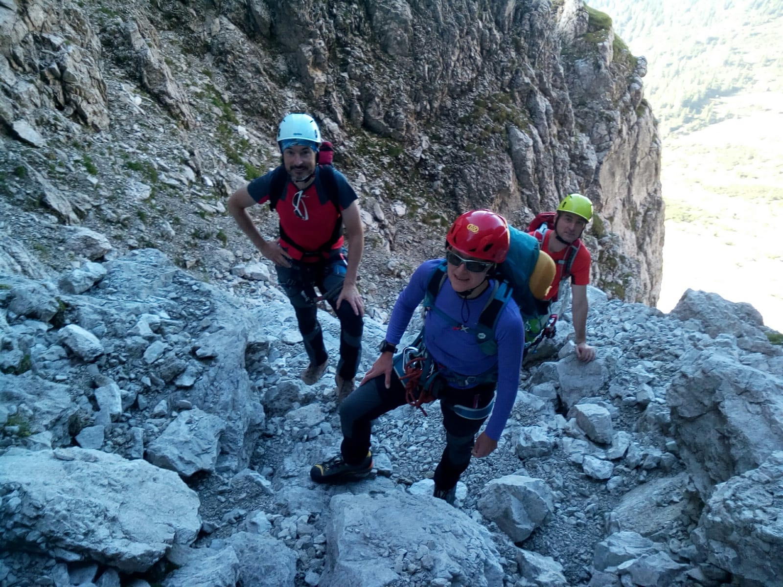 *** in realtà si ha la possibilità di salire subito a sinistra senza dover scendere dalla forcelletta del comunello. Bisogna prestare attenzione però per non perdere le tracce.