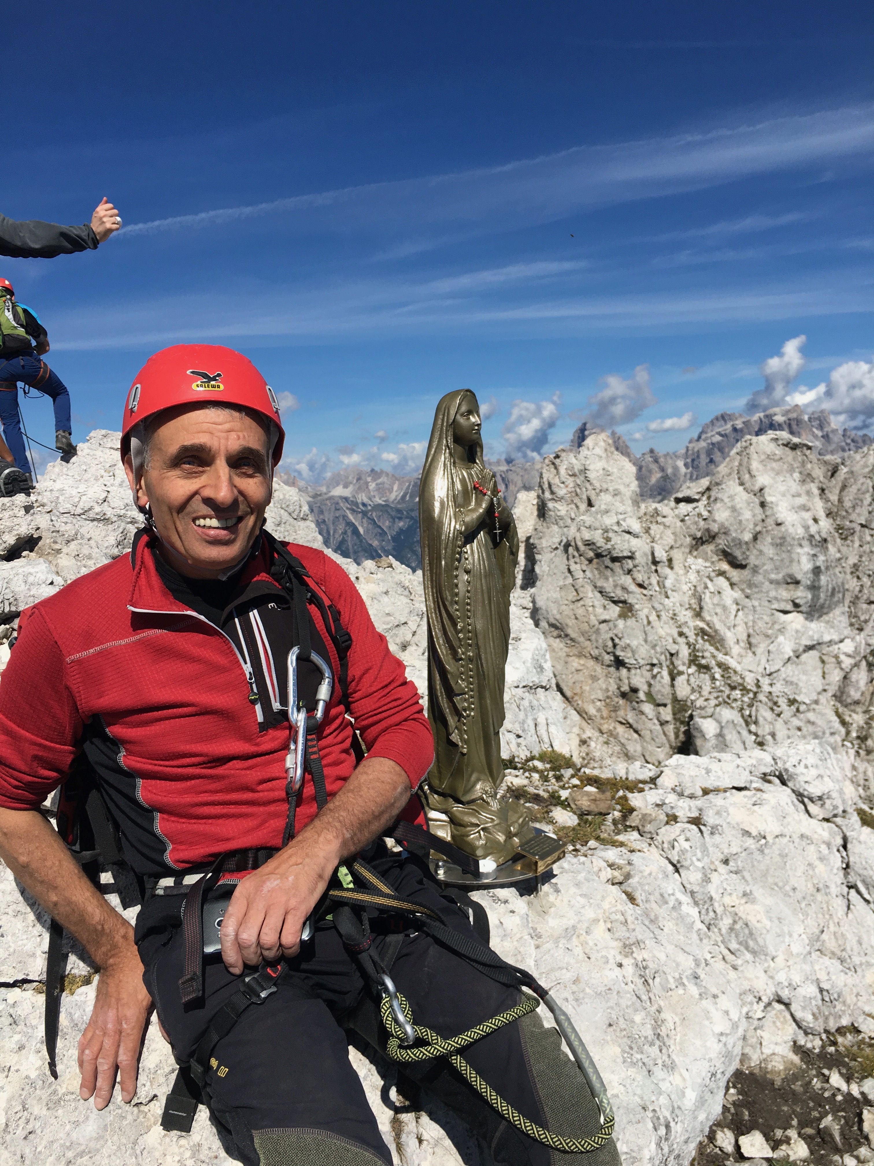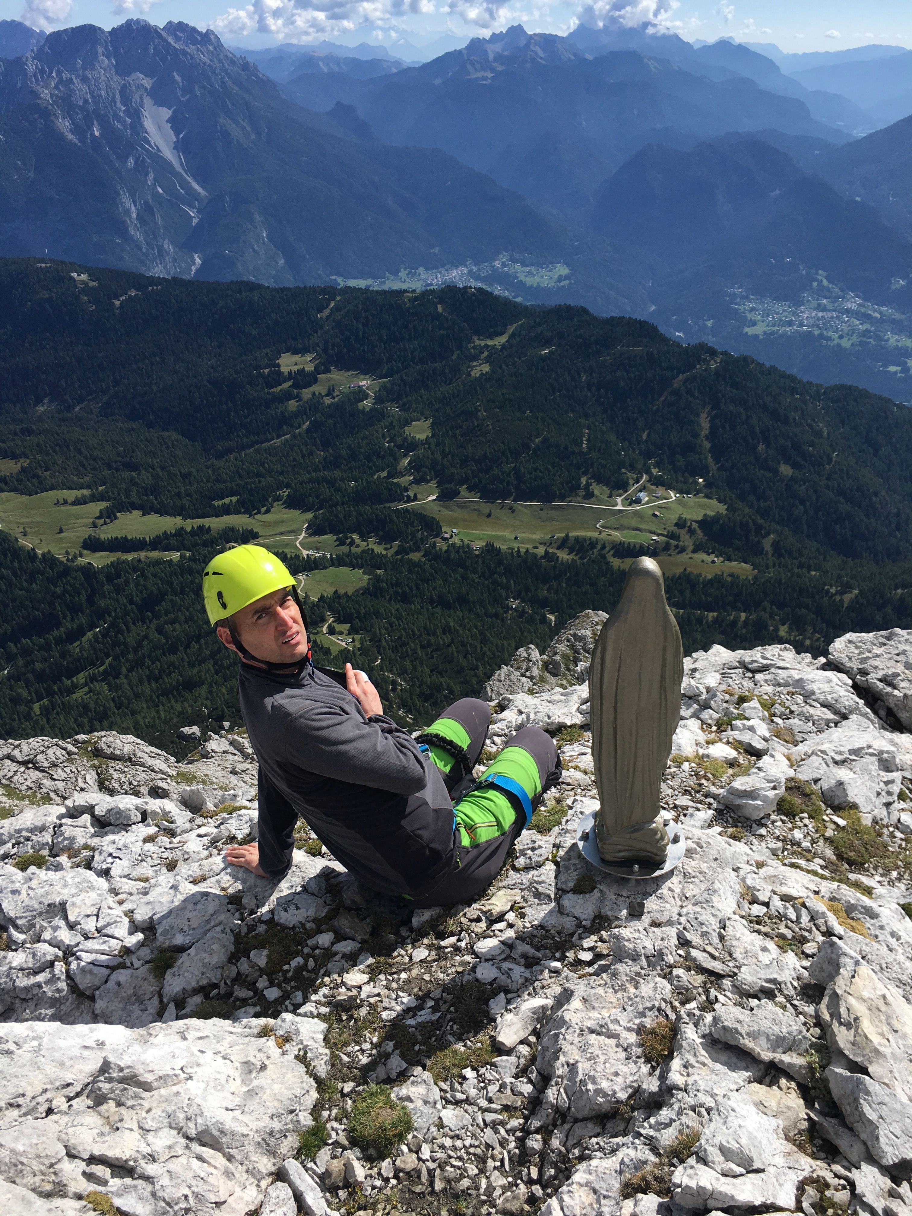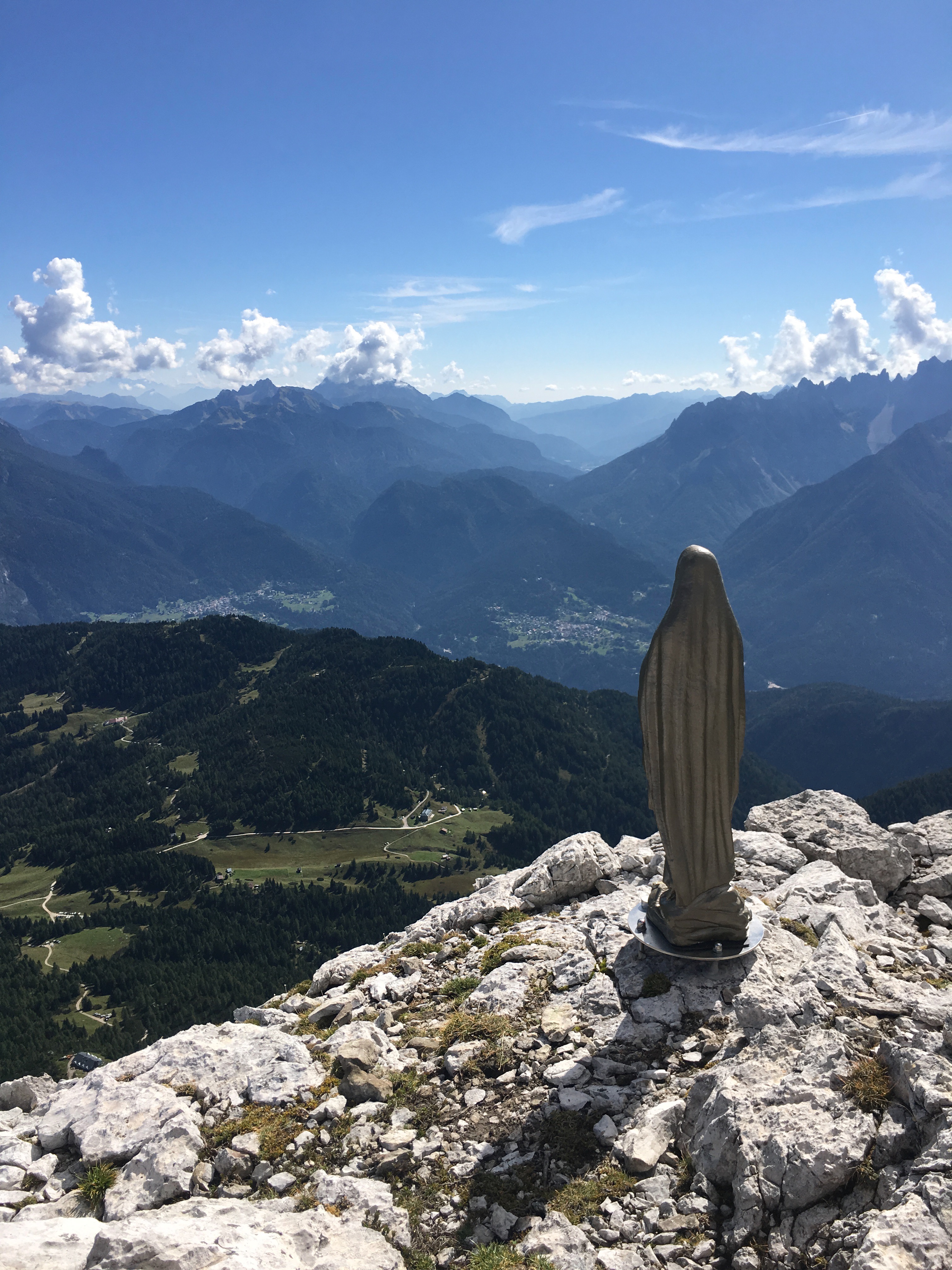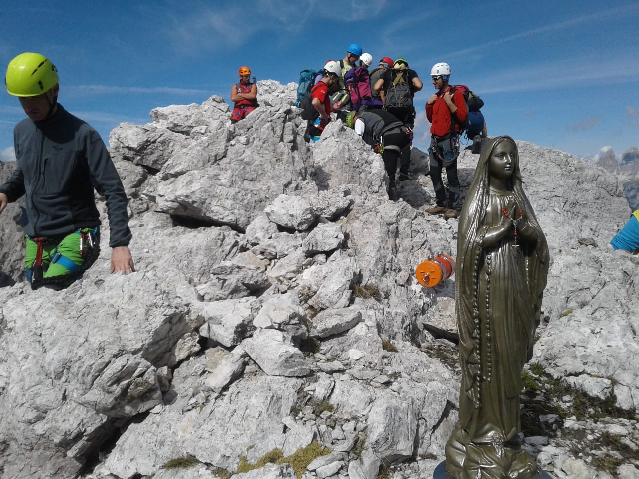 Il Monte Ciarido fa parte del gruppo delle Marmarole orientali, nelle Dolomiti, e raggiunge l’altitudine di 2504 m slm. Per l’ascesa si parte dal rifugio Ciareido situato a 1969 m slm e si prende il sentiero n° 272 verso il “Pupo” di San Lorenzo. Nel momento in cui il Pupo di San Lorenzo compare da dietro il Monte Ciarido, si imbocca il primo canalone sulla destra per raggiungere la vetta. Si tratta di un canalone biforcuto e salendo bisogna tenere la destra arrampicandosi su un grande masso. Sopra tale masso si può trovare anche uno spit, ma, con un po’ di prudenza, si riesce a salire anche senza corda. Si inizia la salita del canalone, facendo molta attenzione alla caduta di sassi perché il fondo si muove molto. Giunti in cima al canalone, alle nostre spalle si può vedere il Campanile del Comunello (il bacio delle marmarole): una grande torre con una spaccatura centrale molto caratteristica. Continuando, aiutandosi un po’ con le mani, si arriva ad una forcelletta stretta (forcella del comunello) che si deve scendere prestando attenzione***. Alzando lo sguardo si può notare un prato in pendenza, lo si risale con cautela per raggiungere la forcella che lo sovrasta.Giunti alla forcella, si gira a sinistra tenendosi la roccia sulla destra. Si inizia a salire su un altro canalone per poi svoltare a destra per poi riprendere a salire (su un prato). Si imbocca l’ultimo canalone e si inizia a scorgere la cima ove è posta la Madonna del Ciarido. L’ultimo pezzo comporta una leggera arrampicata (3-4 metri). Per la discesa è consigliata una corda da 15 metri per calarsi dalla cima in sicurezza. Dalla cima si può ammirare un panorama a 360 gradi: dalle cime di Misurina a quelle di Cortina, senza dimenticare alle spalle il resto del gruppo delle Marmarole.